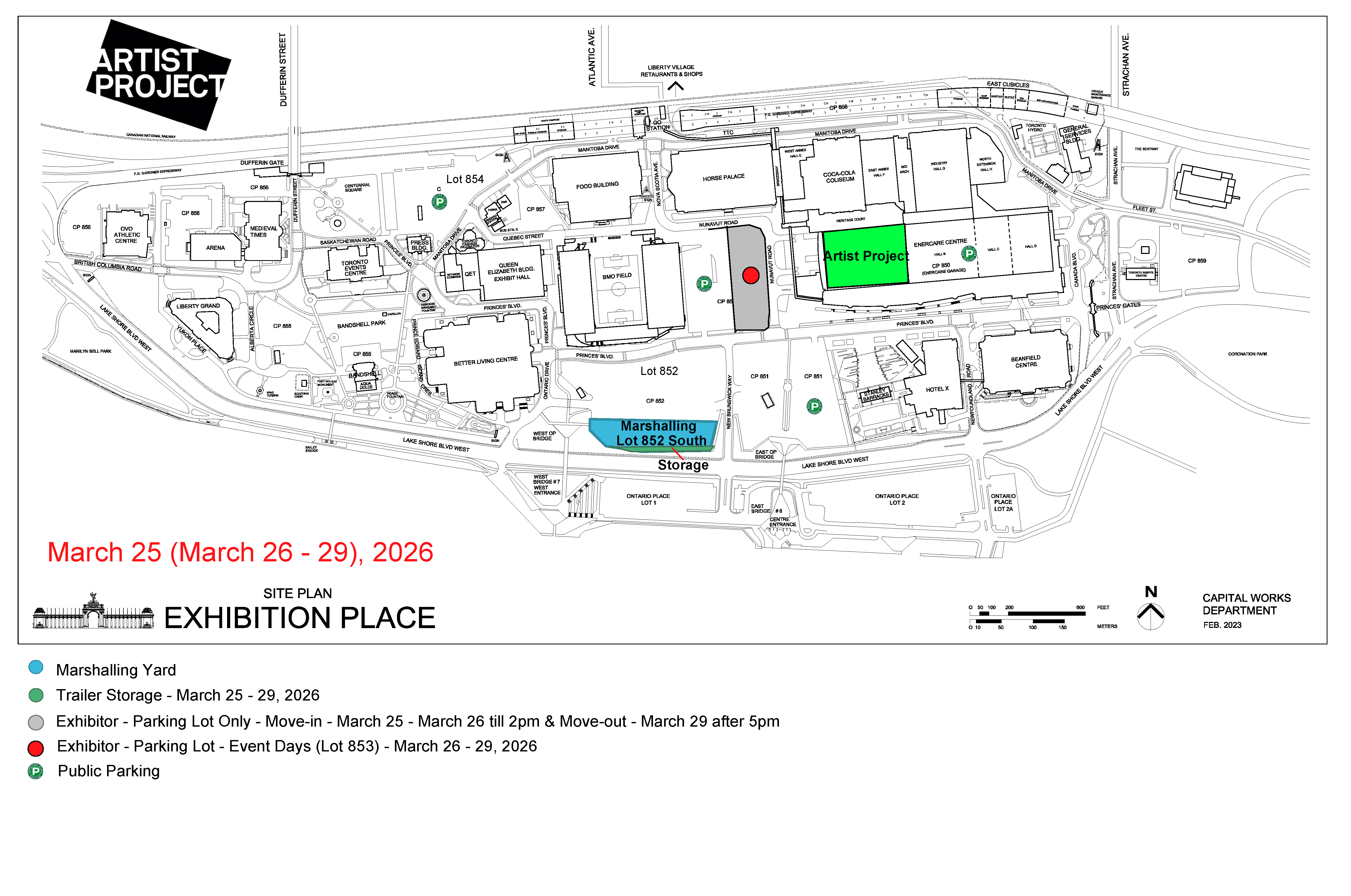 - All exhibitors must first report to the marshalling yard in Lot 852 South (accessible from Ontario Drive).