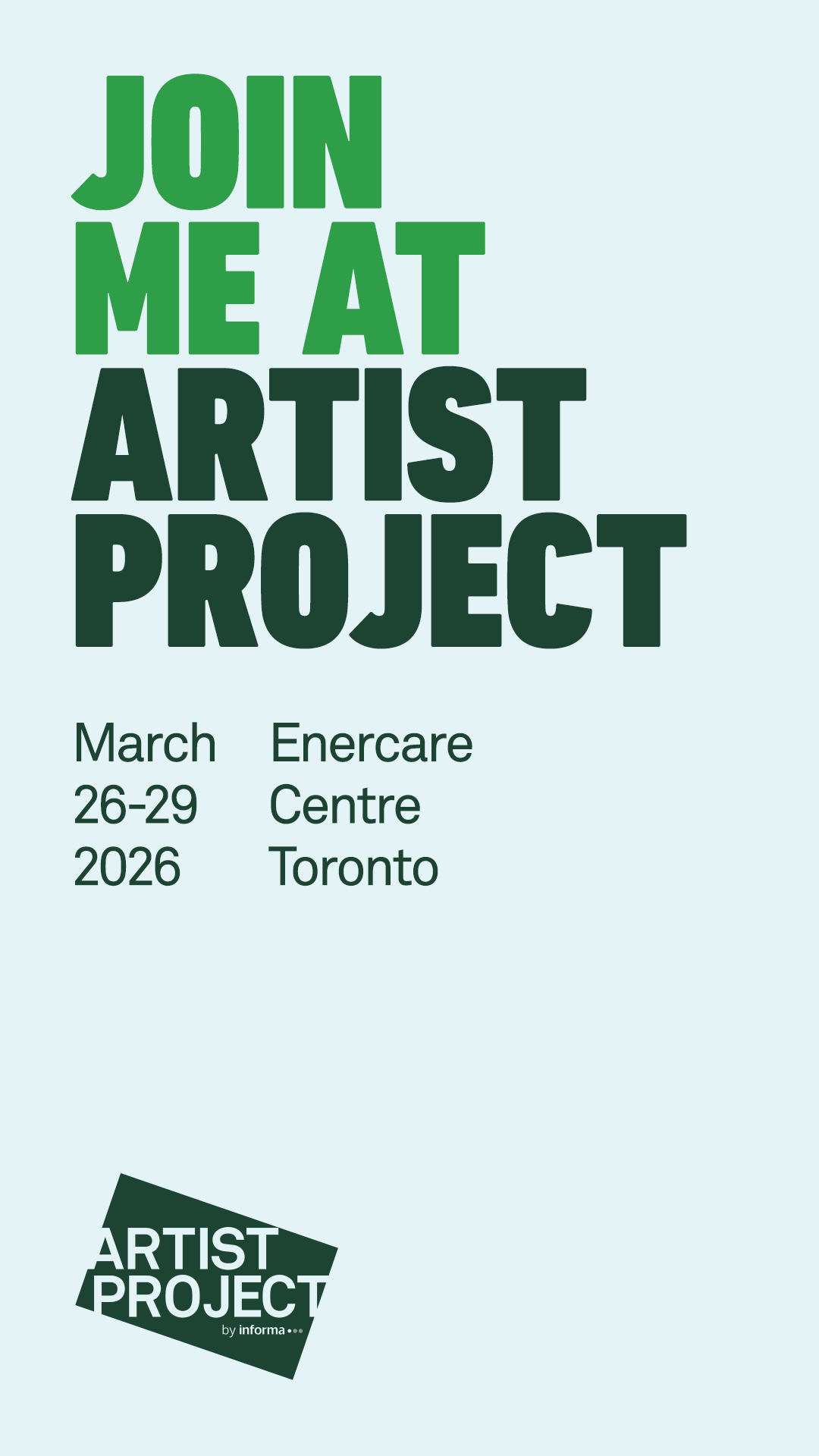Let your following know that you'll be exhibiting at Artist Project 2026 by using the following exhibitor assets.